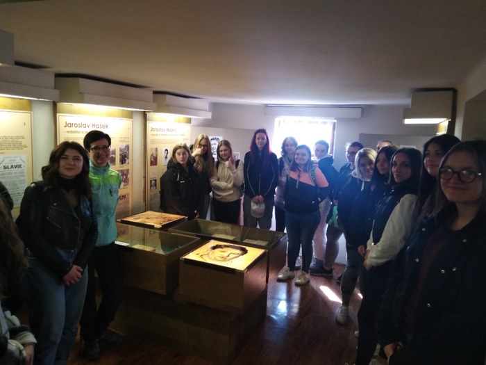 Prvním bodem exkurze byla návštěva Památníku J. Haška, kde jsme si vyslechli výklad a následně jsme zhlédli expozici věnovanou J. Haškovi, a to včetně krátkého filmu věnovaného této osobnosti.