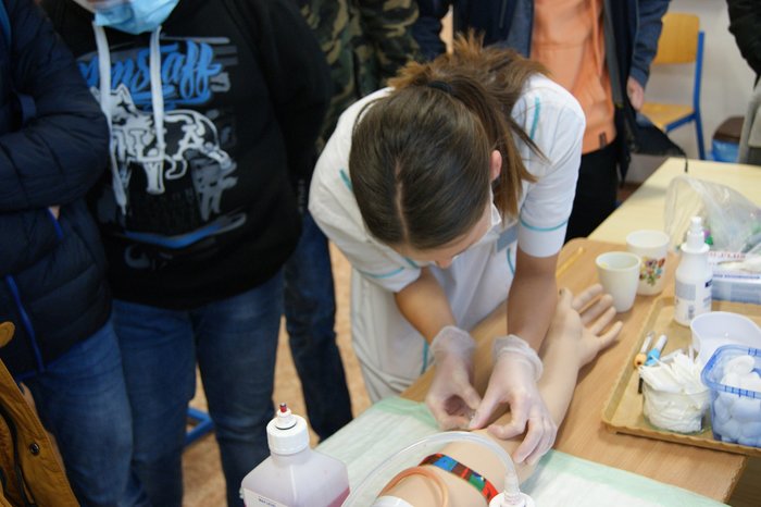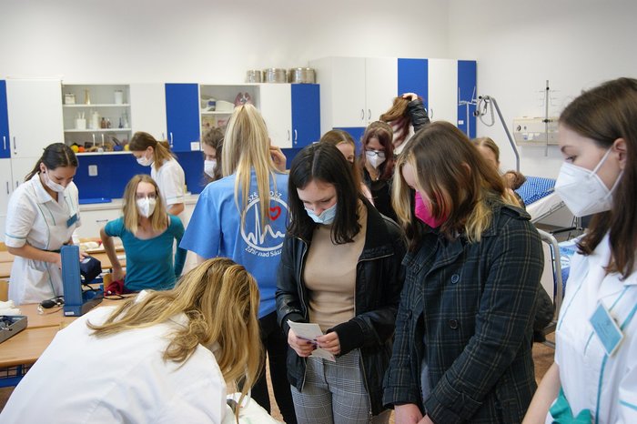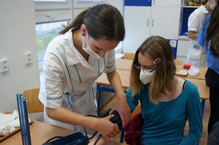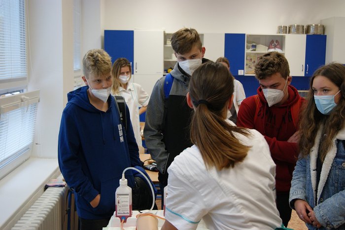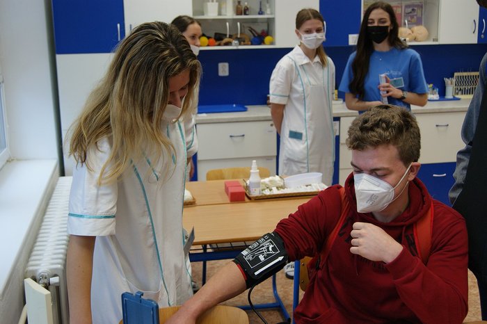 Bylo pro nás velmi potěšující, že se letos může uskutečnit Den otevřených dveří v rámci propagace našich oborů. Rodiče u budoucí uchazeči si prohlédli prostory školy a žáci třetího ročníku oboru praktická sestra a zdravotnické lyceum si pro ně připravili program zaměřený na profesi zdravotní sestry. Zájemci si mohli vyzkoušet odběr krve, aplikaci injekcí, měření krevního tlaku…Vše probíhalo v příjemné atmosféře a k oboustranné spokojenosti.