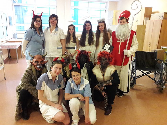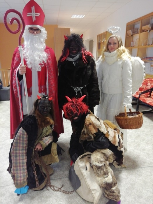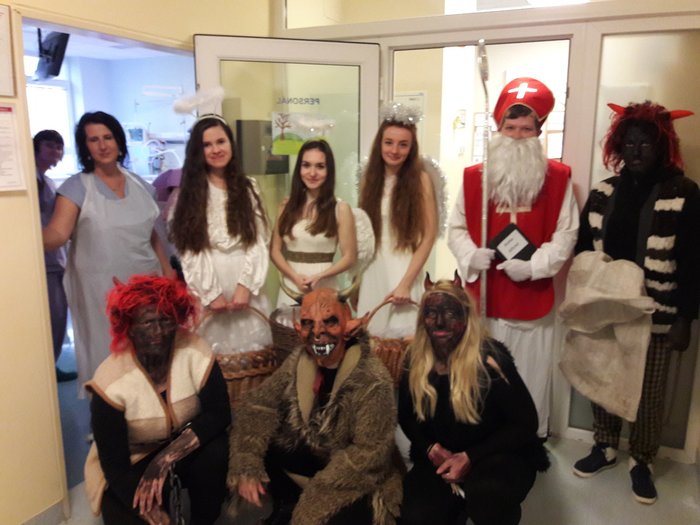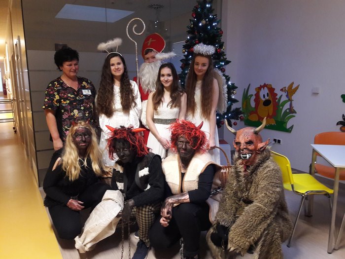 Jako každý rok se i letos naši žáci převlékli do kostýmů Mikuláše, čerta a anděla, aby svou přítomností, pěkným slovem a nadílkou potěšili nemocné děti a seniory v Nemocnici v Novém Městě na Moravě a ve stacionáři a Seniorpenzionu ve Žďáru nad Sázavou. V nemocnici rozdávala nadílku nemocným třída 3.A, ve zařízeních ve Žďáru a v naší škole se této funkce ujala třída 3.L.