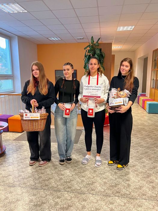 Ve středu 9. října 2024 se naše škola zapojila do tradiční akce „Koláč pro hospic“, který organizovala Oblastní charita Žďár na Sázavou. Formou dobrovolného příspěvku do kasičky měli lidé možnost přispět na podporu péče o těžce nevyléčitelně nemocné a umírající lidi a získat tak chutný koláč. Velké poděkování patří studentkám čtvrtého ročníku, které se do akce zapojily. Celá akce byla velmi zdařilá a jsme velmi rádi, že naše škola mohla přispět na dobrou věc.