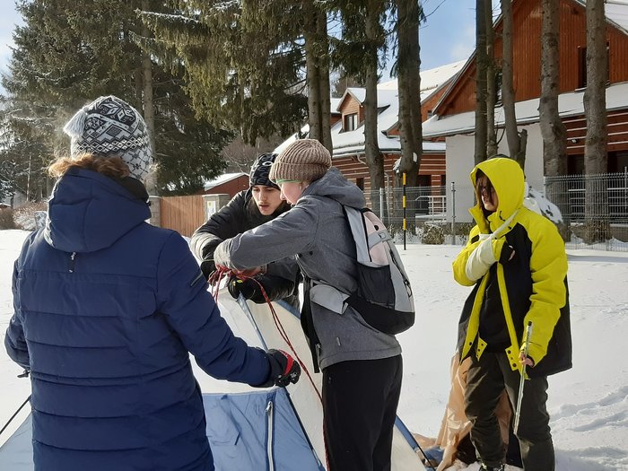 První den jsme strávili odpoledne ve sněhové vánici, odměnou za to byl sníh, který nám vydržel až do závěru a sluníčko, které nás další dny občas prohřálo. Takže jsme běžkovali, sjezdovali, snažili se ovládnout snowboardy, soutěžili, kdo by lépe obstál v případě lavinového nebezpečí… prostě vše, co ke správné zimě náleží.