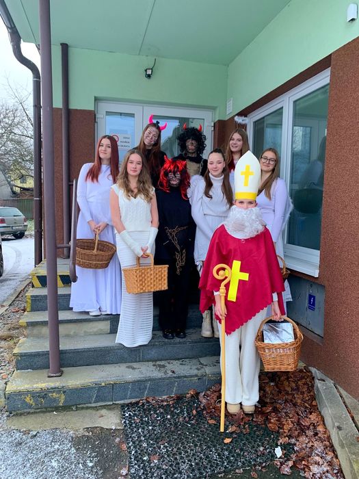 Ve čtvrtek 5.12. se vybraní žáci třídy 3.A a 4.A převlékli do kostýmů a v doprovodu tiskové mluvčí Nemocnice Nové Město na Moravě obcházeli jednotlivá oddělení, kde roznášeli radost a balíčky s malou pozorností pro pacienty. Takto navštívili oddělení dlouhodobě nemocných, dětské oddělení, interní a neurologické oddělení a oddělení následné intenzivní péče. Svou návštěvou potěšili klienty novoměstského Domu s pečovatelskou službou a Domu Pomněnka.