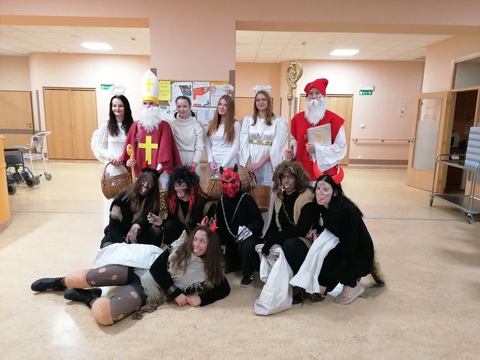 V pondělí 5.12. se vybrané žákyně třídy 2.A převlékly do kostýmů čertů, anděla a Mikuláše a takto namaskované v doprovodu odborné učitelky a tiskové mluvčí Nemocnice Nové Město na Moravě obcházely jednotlivá oddělení a roznášely radost a balíčky s malou pozorností pro pacienty. Takto navštívily oddělení dlouhodobě nemocných, dětské oddělení, interní a neurologické oddělení a oddělení následné intenzivní péče. Vždy po příchodu na pokoj se Mikuláš dotázal pacientů, zda nezlobili a zda umějí nějakou básničku nebo písničku. Pokud si někdo na žádnou básničku ani písničku nemohl vzpomenout, vypomohly mu zpěvem žákyně. Pacienti byli z mikulášské návštěvy nadšení, tato každoroční akce tak splnila svůj účel, tj. rozveselit zejména dlouhodobě hospitalizované pacienty, vytrhnout je z každodenní nemocniční rutiny a přivést je na jiné, radostnější myšlenky.