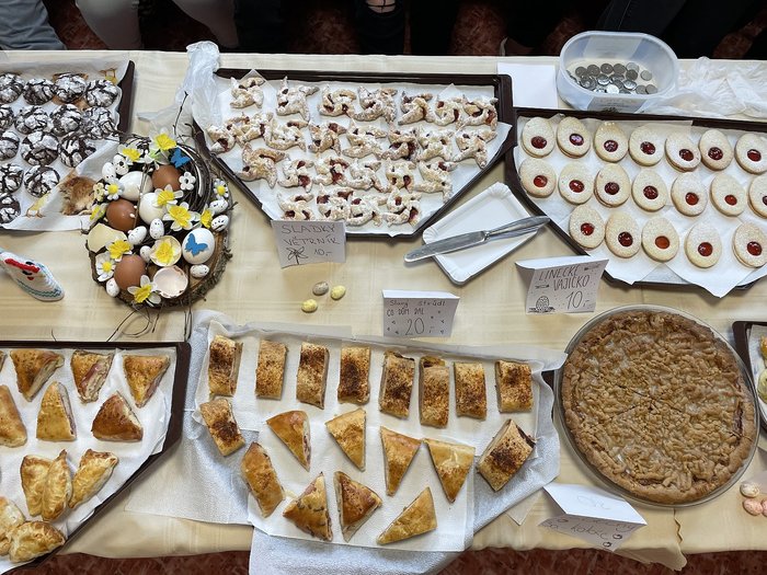 Výrobky studenti prodávali ve jarně vyzdobené jídelně školy, dobrá nálada byla podpořena i příjemnou hudbou. Kupující se rekrutovali jak z řad studentů, tak také pedagogů. Nakoupit dobroty si ale mohli také ostatní zaměstnanci školy.