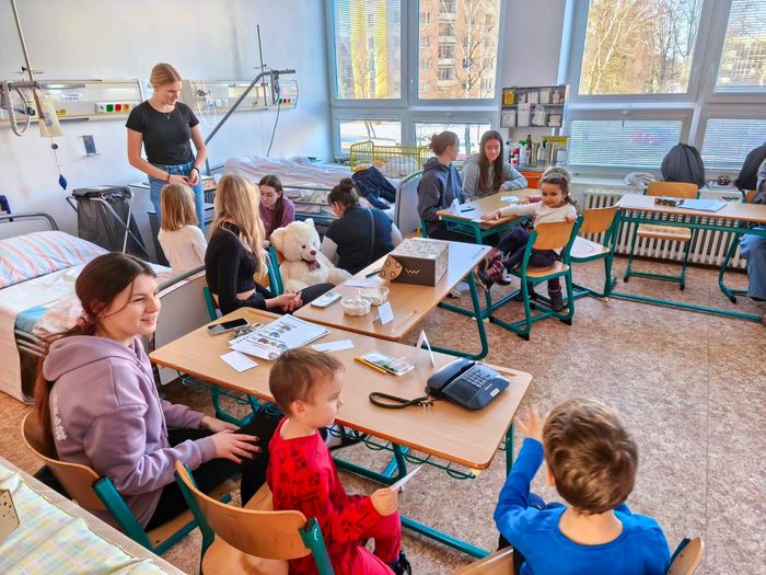 Dne 18. 2. 2025 nás navštívily děti z MŠ Nové Dvory. Přišlo celkem 16 dětí, které si na různých stanovištích mohly vyzkoušet základy první pomoci, péče o miminko, čištění zubů, základy obvazové techniky, aplikace injekce, měření fyziologických funkcí a mnoho dalších aktivit. Program na 11 stanovištích na odborných učebnách si nachystali studenti 3. ročníku oboru Zdravotnické lyceum.