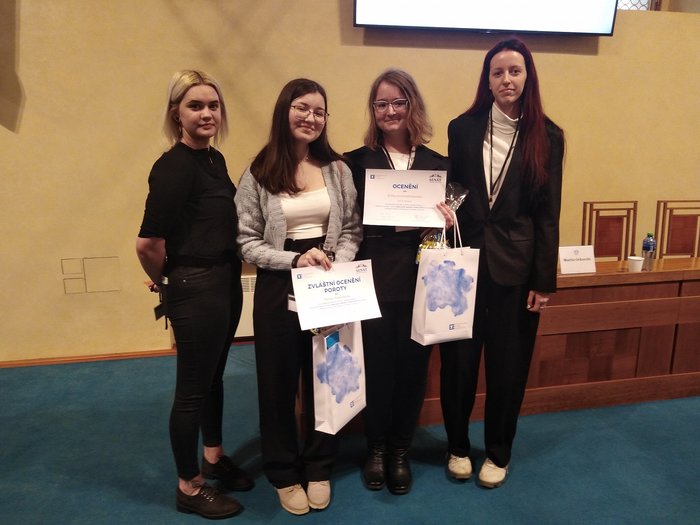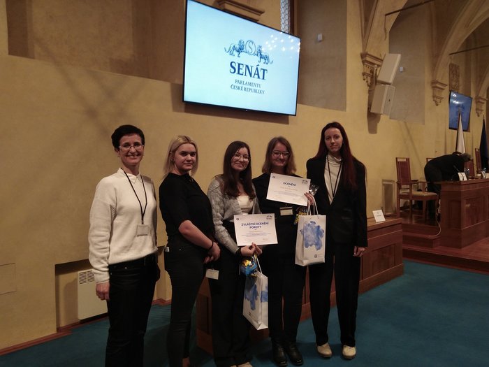 Na vyhlášení byly pozvány i účastnice soutěže z naší školy, a to 2 studentky 3.A, jmenovitě Nikola Sekničková a Natálie Došlíková, a také soutěžící z 1.L-Terezie Matulová a Eliška Krombholzová.