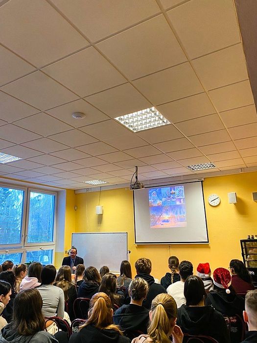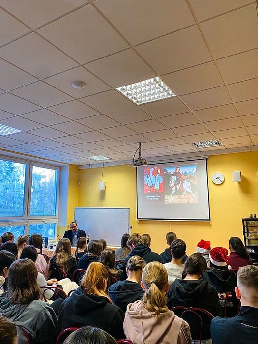 Ve čtvrtek 18.12. 2025 se na naší škole uskutečnila přednáška o adventních a vánočních zvycích. Program se zaměřil na hlubší význam jednotlivých dní – od svaté Barbory a Mikuláše až po Štědrý den a svátek Tří králů. Studenti objevovali, jak tyto milníky prožívali naši předci a jak se lidové tradice proměňovaly v čase.