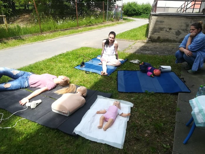 Naše škola participuje v rámci realizace ukázek první pomoci v mateřských školách. Žáci jsou figuranty a zároveň mentory při nácviku krizových situací způsobených termickým poraněním. Oslovují děti a jejich doprovod z řad rodičů, prarodičů a diskutují nad tématikou ošetření jednotlivých ukázek poranění.