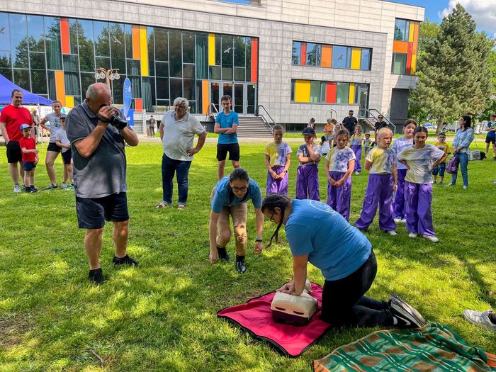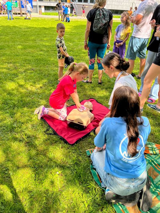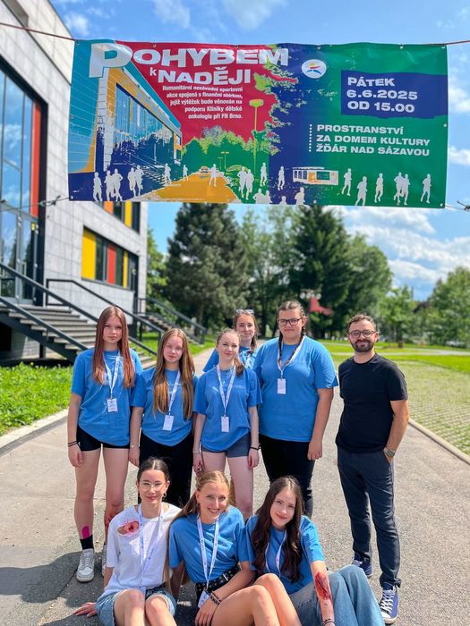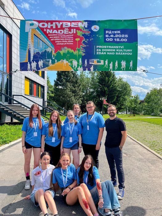 Pro tentokrát se žákyně z prvního a druhého ročníku domluvily a pomáhaly se zajištěním akce Pohybem k naději. Jedná se o běh, který podpoří pacienty s onkologickým onemocněním. A kdo jiný, než naše škola by měl pomáhat. Děvčata si s kolegou Berglem připravila maskování poranění a návštěvníkům vysvětlovala možnosti ošetření – krvácení, KPR, pneumotoraxu, otevřené zlomeniny. Samozřejmě poskytly i ošetření dle potřeby závodníkům.
