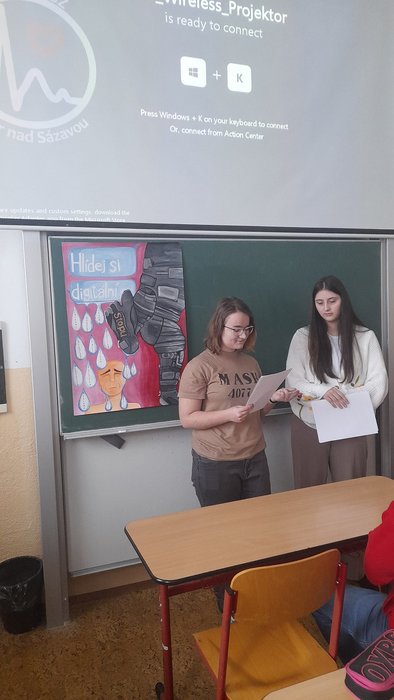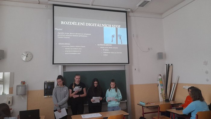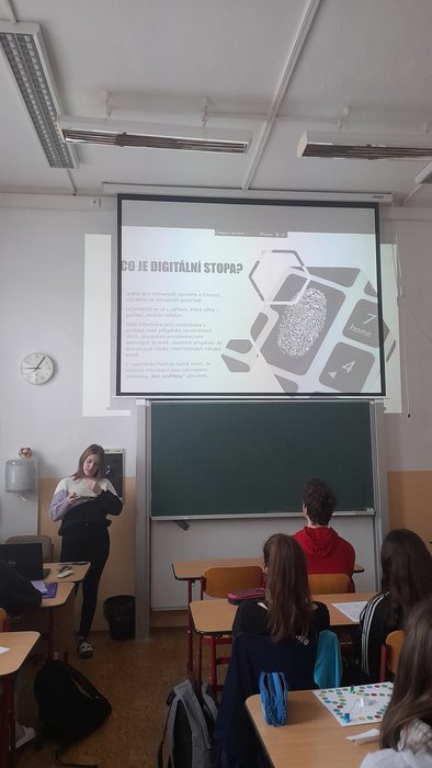 Studenti 1. L se zúčastnili kreativní soutěže Digitální stopa, aneb víme, co vše o sobě zanecháváme na internetu? Žáci v rámci této soutěže mohli natáčet videa, kreslit plakáty, komiksy nebo fotoromány, připravit deskové nebo počítačové hry na téma digitální stopa. Soutěžit mohli jednotlivci nebo skupiny (max. 5 žáků). Studenti se zhostili daného úkolu velmi kreativně. Vytvořili 4 prezentace, 3 deskové hry, 1 video, 1 komiks a 2 plakáty. Do krajského kola bylo vybráno 5 prací, které budou soutěžit o hodnotné ceny.