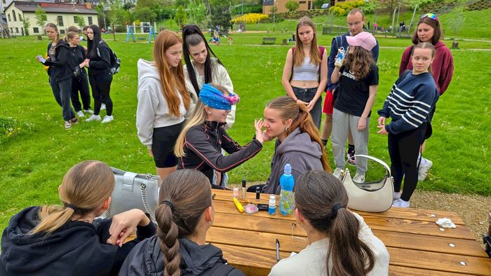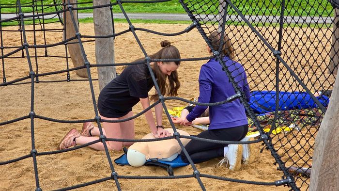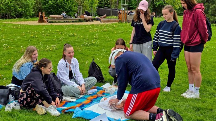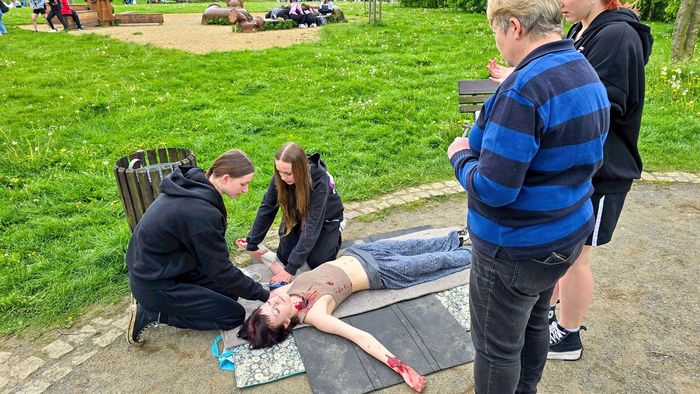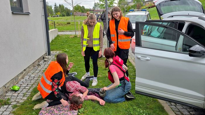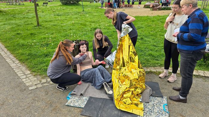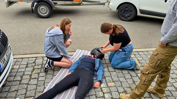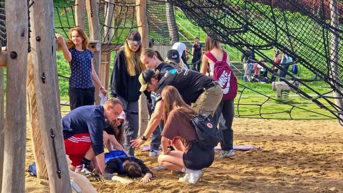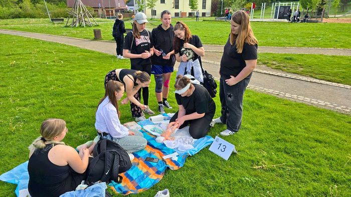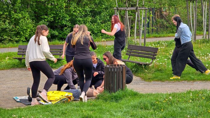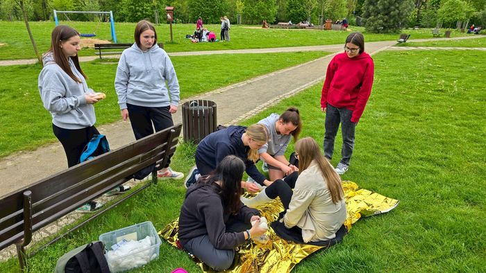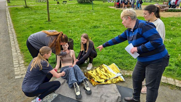 První květnové pondělí se stalo dějištěm výuky první pomoci, kde žáci prvních a druhých ročníků prošli praktickým tréninkem v modelových situacích. Farská humna ožila stanovišti zaměřenými na různé dovednosti, od pohotovosti při zranění až po luštění hádanek v rámci kvízů. Záchranáři z agentury Progressrescue společně s učiteli hodnotili výkony studentů, kteří si také vyzkoušeli práci s turniketem nebo skládání obrázků v alkoholových brýlích. Na stanovišti se simulací dopravní nehody se učili sundávat helmu zraněnému motorkáři, jinde otáčet zraněné s poraněnou páteří, čelili bodným ranám u domácího násilí… Rozmanitost stanovišť byla velká. Díky pomoci žáků z třetích ročníků se soutěž vždy vydaří. Žáci 3.ročníku zdravotnického lycea v rolích zraněných, předvádějí neuvěřitelná herecká čísla a budoucí sestry zase v rolích pedagogů na stanovištích zadávají úkoly pro zpestření a hodnotí a motivují své mladší spolužáky. Patří jim obdiv, s jakým oba třetí ročníky k této soutěži přistupují.