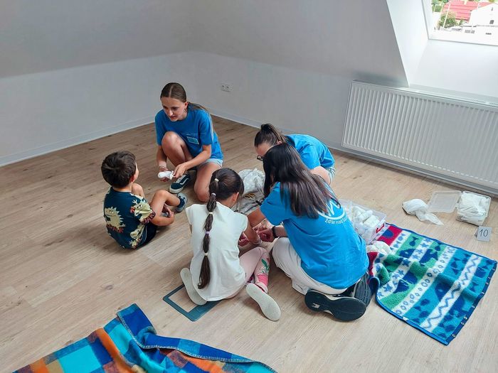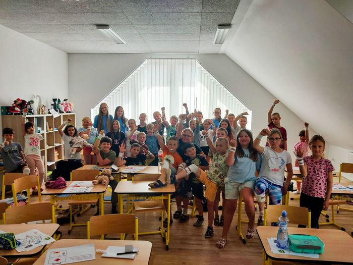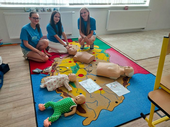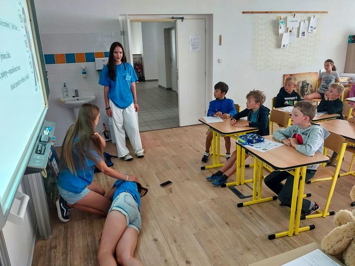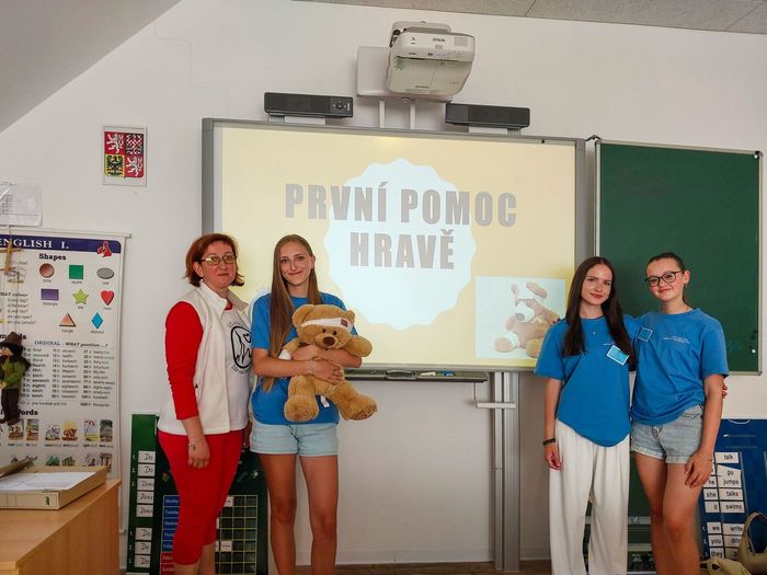 Dne 25.6. jsme navštívily Základní školu ve Vojnově Městci v rámci minikurzu První pomoc hravě. Děti měly možnost si vyzkoušet resuscitaci, obvazovou techniku, poslechnout si bijící srdíčko nebo si nechat změřit krevní tlak. Aktivity jsme doplnily malováním kufříku první pomoci a aplikací "uzdravující injekce" do nemocného plyšového medvídka. Děti byly velmi aktivní a celý minikurz se vydařil!