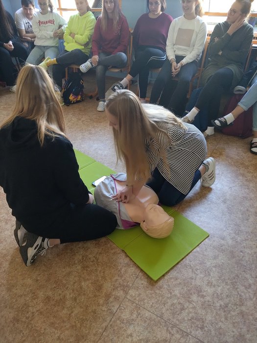 Přijeli ProgressRescue …… Po oslavách 50. výročí školy a plesovém říjnovém rozjezdu se maturanti školili v první pomoci. Lukáš a Lukáš prohlubovali znalosti a hlavně praktický nácvik při dopravních nehodách. Zaměřili se na bezpečnost účastníka u dopravní nehody a hlavně na efektivní pomoc. Ta se netýkala pouze zdraví, ale také ochrany zachránců, jejich posádky a ostatních účastníků v silničním provozu. Díky zkušenostem z pracovního i osobního života přednášejících a jejich přátelském přístupu bylo dopoledne velmi prima. Děkujeme.