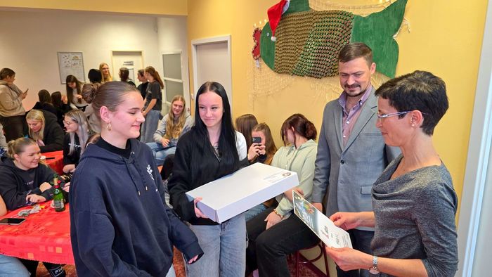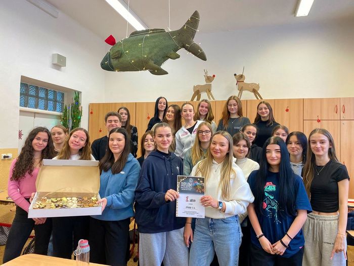 Třetí ročník soutěže o nejoriginálněji vyzdobenou třídu vyhráli žáci 1.L, kteří si z rukou pana ředitele převzali krabici cukroví. V hlasování nás všech ze školy skončila těsně druhá 3.A a třetí příčka patřila 3.L. Sladká cena čekala i na ostatní třídy, které se zapojily, a všem za to moc děkujeme. Těšíme se z krásně vyzdobených prostor na téma Vánoční kapr.