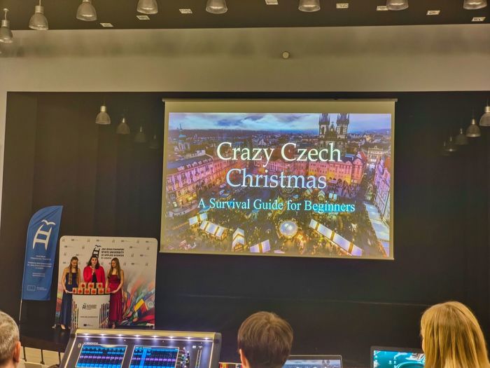 Na univerzitě jsme se aktivně zapojili do programu mezinárodního dne, kde jsme se setkali se zástupci dalších škol a univerzit z Polska, Španělska, Ukrajiny, Kazachstánu a USA. Vrcholem celého setkání byly anglické prezentace v Aule Comeniana na téma Vánoce v naší zemi. Naši školu a město skvěle reprezentovaly Aneta Stará, Lucie Dítětová a Karolína Špinarová, které zaujaly originálně pojatou prezentací a vhodně zvoleným outfitem. Zástupci z řad učitelů naší Zdravky se navíc setkali s rektorem univerzity, který nás oficiálně přivítal v zasedací místnosti mezinárodní kanceláře.