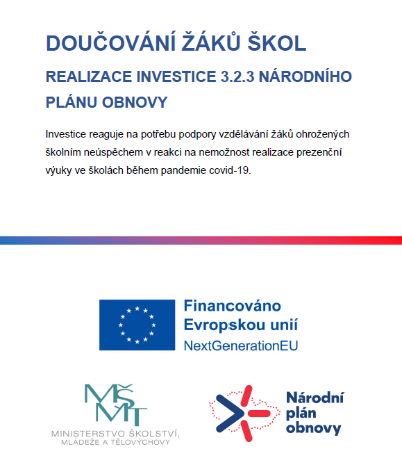 Projekt je zaměřen na doplnění znalostí žáků v oblasti vzdělávání. Finančním zdrojem pro realizaci doučování potřebných žáků jsou prostředky fondu Evropské unie – Next Generation EU.